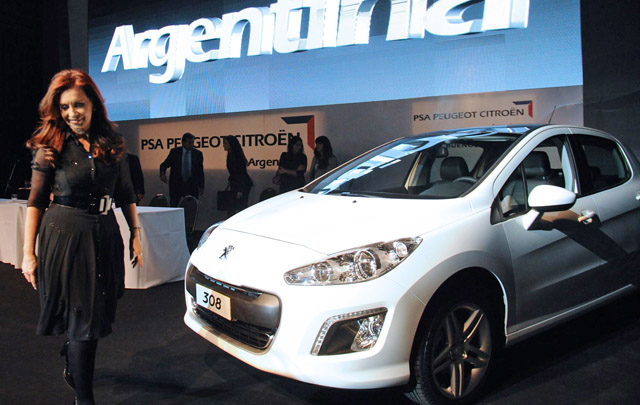 La Jefa de Estado asistió a la presentación del Peugeot 308 en la planta del Palomar acompañada por la ministra de Industria Débora Giorgi, y el ministro de Educación Alberto Sileoni, además del intendente de Tres de Febrero, Hugo Curto, y autoridades de la automotriz francesa.