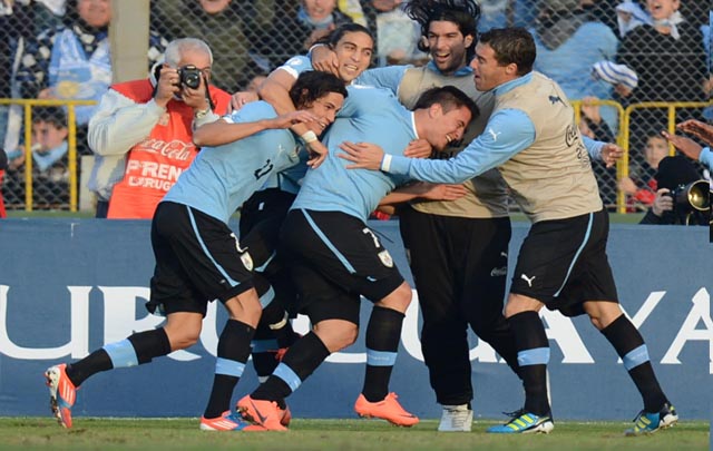 Uruguay: Fernando Muslera; Maximiliano Pereira, Sebastián Coates, Diego Godín y Martín Cáceres; Diego Pérez, Egidio Arévalo Ríos y Alvaro Pereira; Diego Forlán, Edinson Cavani y Luis Suárez. DT: Oscar Tabárez.
