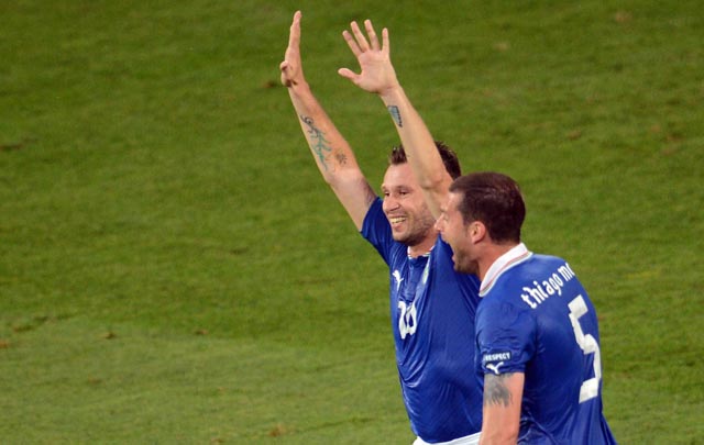 Goles: PT: 35' Cassano (I). ST: 45' Balotelli (I)