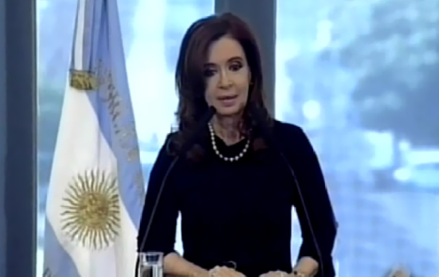 La mandataria hizo alusión a la reciente "caída de todas la bolsas de Europa salvo la de Atenas que había crecido 4 por ciento".