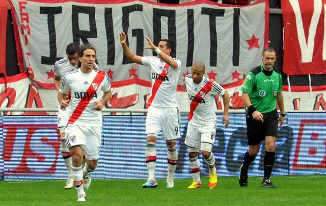 River: Marcelo Barovero; Gabriel Mercado, Jonathan Maidana, Leandro González Pirez y Ramiro Funes Mori; Carlos Sánchez, Ezequiel Cirigliano, Leonardo Ponzio y Manuel Lanzini; David Trezeguet y Rogelio Funes Mori. DT: Matías Almeyda.
