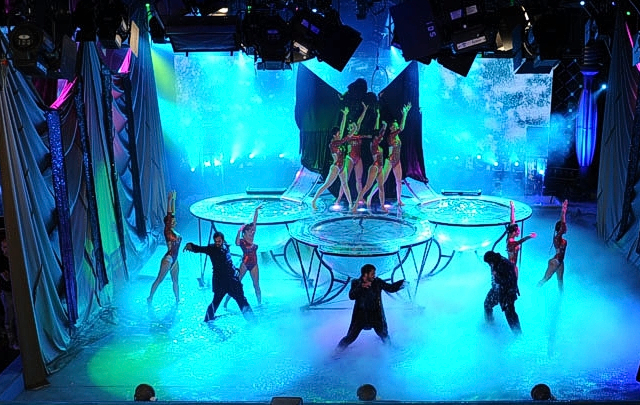 Desde hace dos semanas, las parejas del Bailando 2012 vienen ensayando para diseñar coreografías vistosas en los más de diez mil litros de agua albergados por las piletas, calefaccionados a 33 grados y que cuentan con un sistema novedoso de reciclado.