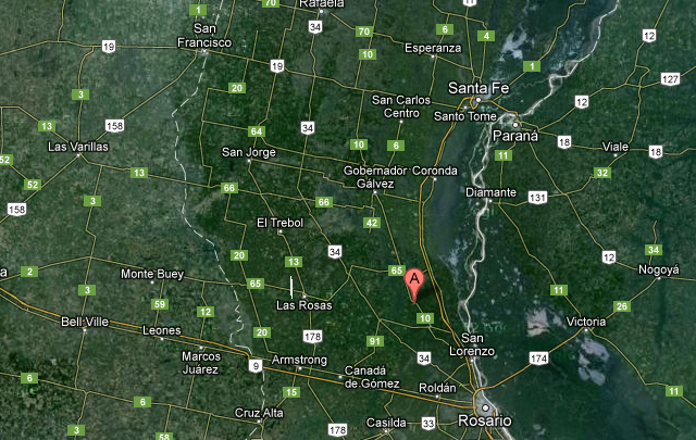 El operativo se realizó en un camino rural de la comuna de Clarke, en el departamento Iriondo, unos 50 kilómetros al norte de Rosario.