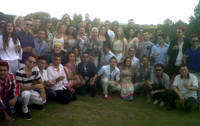 La producción dispuso una extensa mesa con pastas en la Galería del Sol, en torno a la cual se reunió el elenco para celebrar.