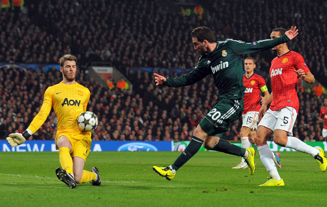 Higuaín se lo perdió por poco en el 34, cuando el Real Madrid parecía reaccionar, y Vidic cabeceó por encima del travesaño un minuto más tarde.