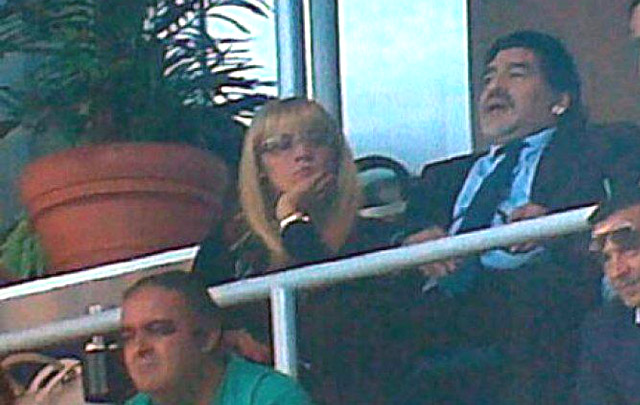 El director técnico fue junto a su nueva pareja al estadio Santiago Bernabéu, para ver el superclásico entre el Barcelona y el Real Madrid. Maradona y Rocío vieron el partido desde un palco que le pertenece al jugador Cristiano Ronaldo.