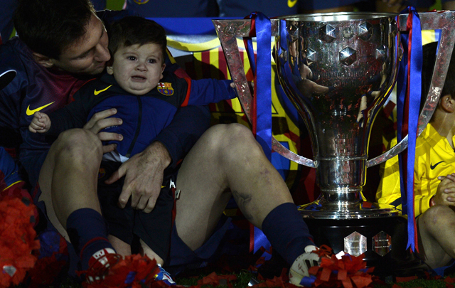 Messi festejó un nuevo título con su hijo Thiago en brazos