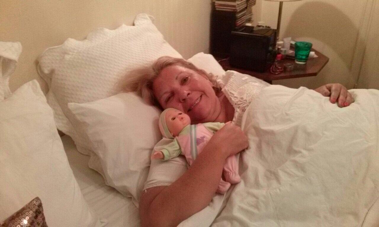 La imagen muestra a la líder de UNEN en su cama, con una muñeca, junto a una leyenda que reza: "A la Republiquita la cuido yo!!!".