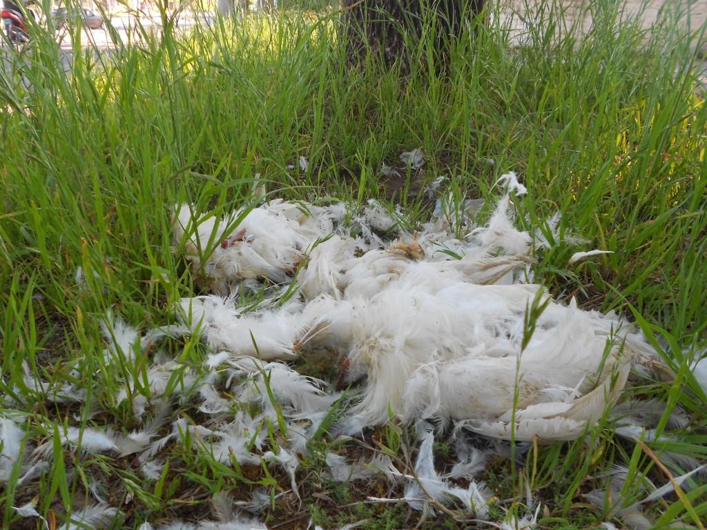 Ni en estas épocas ni en otras, la gente se dedica a sacar cabezas y tirar tres pollos que bien podrían terminar en alguna olla, a menos que de rituales religiosos se trate.