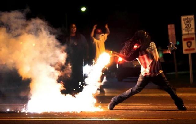 Manifestantes quemaron edificios, saquearon comercios y dispararon contra policías en la ciudad de Ferguson, en el estado de Misuri (centro de EEUU), tras el anuncio de que el agente blanco que mató a un joven negro desarmado en agosto pasado no será juzgado.