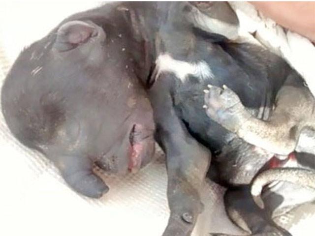 Nació el martes en la localidad de La Banda. Se alimenta con dificultad a pesar de los cuidados de sus dueños. "La madre le da de mamar, pero el perrito se ahoga", explicaron quienes lo cuidan. (Foto: @Subrayado )