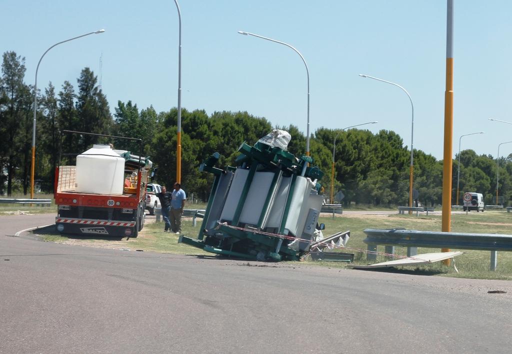 Al parecer la pesada carga se habría deslizado hacia un costado cuando el camión que la trasportaba ingresó a dicha rotonda y cedieron las amarras de la misma.