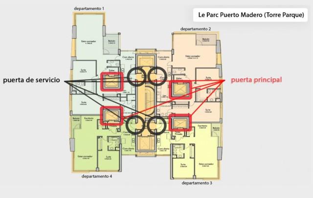 El pasillo en cuestión comunica, de un lado, con el departamento del fiscal, y del otro, enfrentados ambos livings, con otro que está habitado por un ciudadano extranjero.