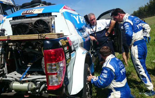 El piloto cordobés rompió el cardan y debió completar el tramo sólo con tracción delantera. De todos modos, “El Coyote” no abandonó y seguirá en la competencia. Largará entre los puestos 30 y 40. (Foto Cadena3)