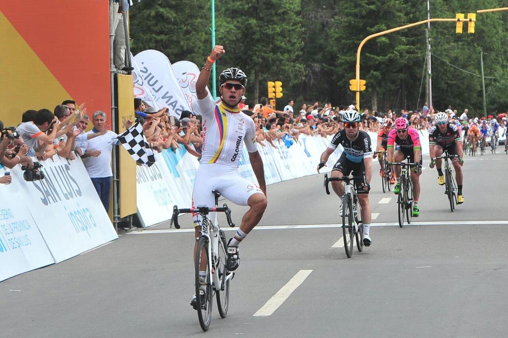 - El colombiano, pese a que sólo tiene 20 años, bate de nuevo a Cavendish y Modolo en la meta de Juana Koslay