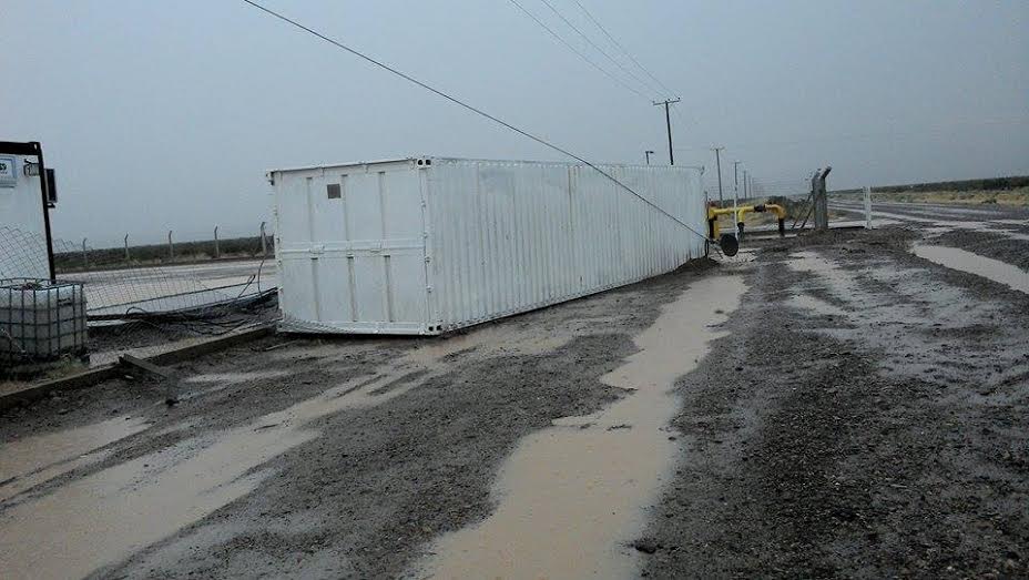 El hecho se registró este lunes en horas de la tarde, mientras el temporal de agua y viento azotaba la región. Allí, dos operarios de la empresa Enerflex -que presta servicios a American Petrogas, en el yacimiento Midas, zona de Casa de Piedra- trabajaban en el interior de las instalaciones y repentinamente el viento volteó el trailer con los trabajadores adentro. Los masculinos, oriundos de 25 de Mayo, sufrieron heridas leves y debieron salir por las ventanillas.