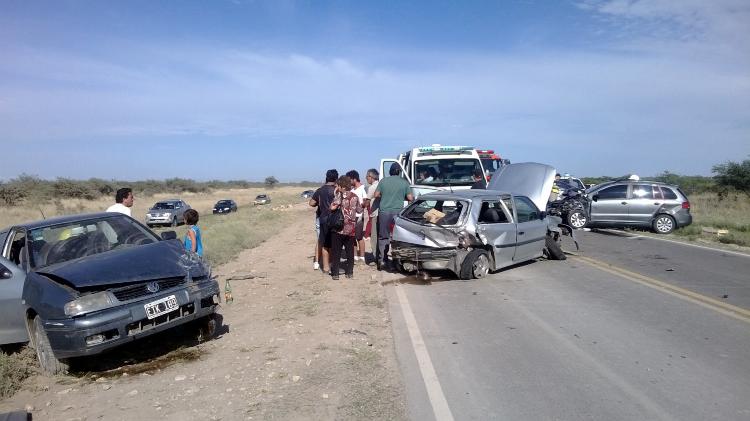 De este siniestro participaron tres automóviles, un Volkswagen Suran, un Chevrolet Corsa y un Volkswagen Polo gris oscuro colisionaron esta mañana sobre Ruta Nacional N°22. Los 6 heridos fueron derivados al Hospital "Doctor José Cibanal" de Río Colorado.