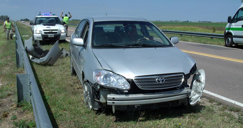 Se le reventó una rueda delantera, pegó contra los guardarrail que hay en esa zona por las pendientes de las banquinas y finalmente quedó sobre la cinta asfáltica. El vehículo un Toyota Corolla quedó con serios daños.