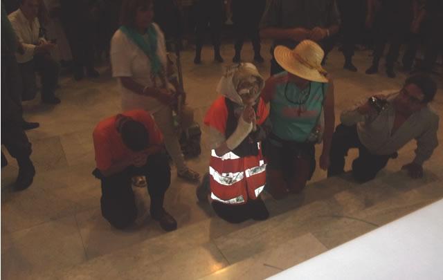 Emma besa el suelo del altar de la Basílica de Luján.