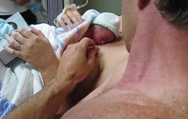 Jamie tenía siete meses de gestación y no sobrevivió al parto. La mamá le pidió a los médicos que se lo dieran. Lo desnudó y se lo puso en el pecho. De repente, el bebé empezó a moverse. (Foto Cadena3)