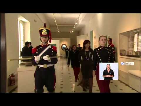 Mientras la fanfarria de Granaderos interpretaba la marcha de San Lorenzo, Cristina tomó el sable corvo del Libertador de manos de un efectivo de ese regimiento y lo depositó detrás de una vitrina donde será exhibido a partir de ahora a todo el público que visite el museo.