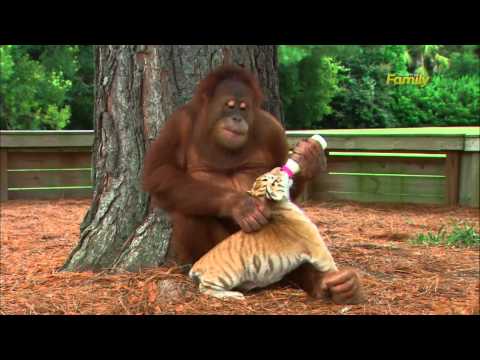 El orangután que alimenta y cuida a tres tigrecitos es furor