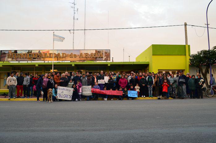 Los vecinos de Arata se convocaron en la jornada de ayer frente al Municipio de esa localidad, para brindarle su apoyo al jefe comunal, además de transmitirle palabras de apoyo.