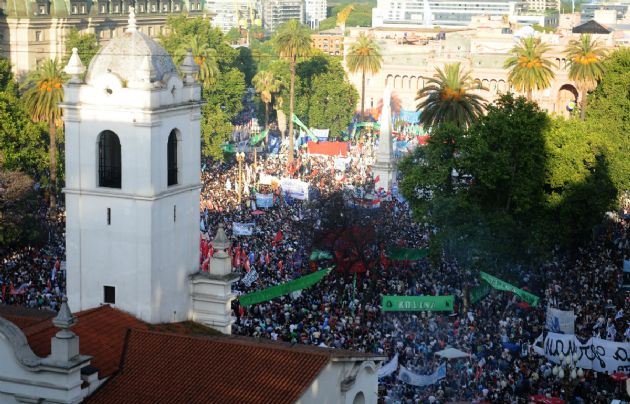 Gremios, movimientos sociales, agrupaciones políticas, centros de estudiantes, jubilados y organismos de derechos humanos se congregaron en una plaza desbordante que comenzó a llenarse apenas pasadas las 16:00, cuando aún faltaban tres horas para que la gran protagonista arribara a la Casa Rosada.