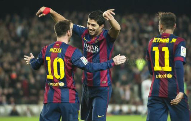 Así regresaría el tridente de Barcelona, el que más goles marcó en el 2015. Messi, Neymar y Suárez convirtieron el 75% de los goles del conjunto español en el año.