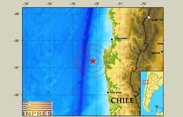 El epicentro fue en el Océano Pacífico a 391 kilómetros al noroeste de Mendoza, a 119 al sudoeste de Coquimbo y a 357 kilómetros al oeste de San Juan, según el Instituto Nacional de Prevención Sísmica (Inpres).