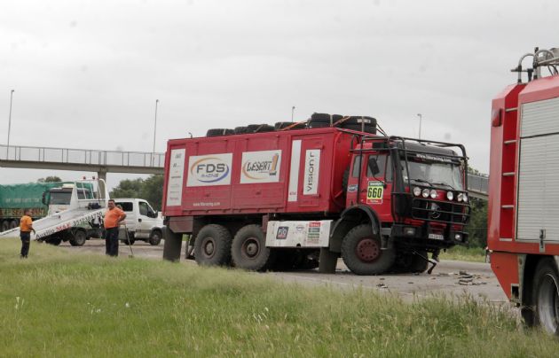 Las primeras informaciones aseguran que del siniestro participaron dos camiones, uno de asistencia de un equipo francés del Dakar, y cuatro automóviles, entre ellos un prototipo del rally.