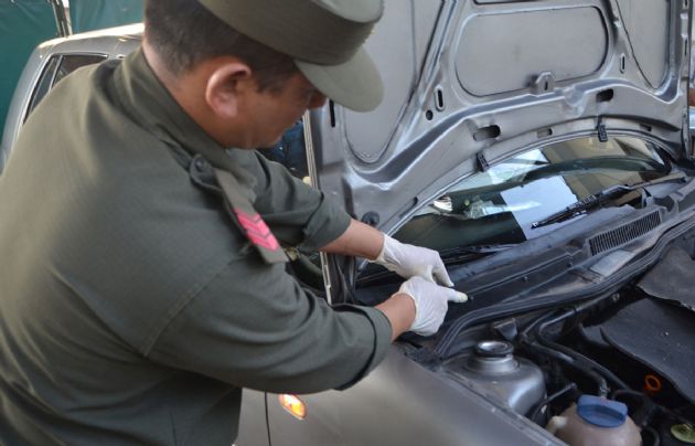 "Los gendarmes interceptaron el rodado, que circulaba desde la localidad de Salvador Mazza hacia Salta Capital, y al efectuar la requisa correspondiente divisaron que los tornillos que sujetaban la guantera presentaban signos de haber sido removidos", indicó Gendarmería a través de un comunicado oficial.