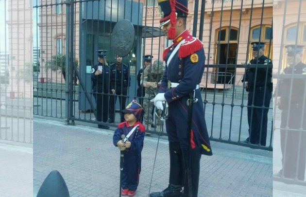 Detalló, asimismo: “Lo tenía a upa y cuando vio a los granaderos me pidió bajar al suelo, y nunca me imaginé que iba a salir corriendo detrás de ellos para desfilar”.