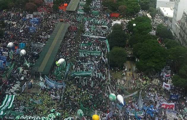 El sindicalista encabezó un masivo acto en la 9 de Julio, junto a otros gremios y sectores políticos. Hubo fuertes expresiones contra el Gobierno. "Tengo pelotas para defenderme solo", dijo.