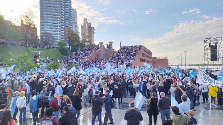 "Sabemos que tenemos más desafíos por delante, pero no nos va a ayudar traer a los mismos del pasado, a los que tantas veces nos defraudaron", enfatizó el Presidente ante miles de personas que se reunieron en las escalinatas del Parque España, ubicadas en Sarmiento y el río.