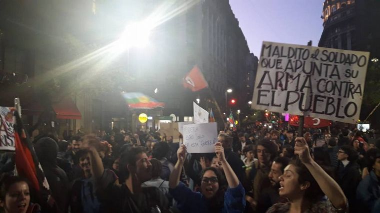 La protesta se produjo en las inmediaciones del edificio ubicado en Roque Sáenz Peña 547, en el centro porteño, contra las medidas económicas que aplicó el gobierno del presidente de Chile, Sebastián Piñera, que derivaron en reclamos sociales con muertos y miles de detenidos.