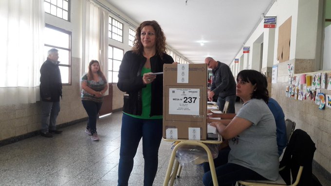 Esta mañana, votó en el Colegio Domingo Savio de Santa Rosa la candidata del Frente de Izquierda de los Trabajadores, Claudia Lupardo.