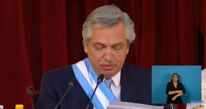 Junto con la vicepresidenta Cristina Fernández de Kirchner, y el presidente de la Cámara de Diputados, Sergio Massa, Fernández desplegó los principales lineamientos de sus próximos cuatro años como jefe del Estado al enfatizar la convivencia en democracia.