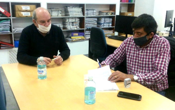 En la oficina de la Dirección de Programas de Obras Nacionales, en la ciudad de Santa Rosa, se firmó el contrato correspondiente entre el ministro de Educación, Pablo Maccione, y la empresa Aníbal Hernández.