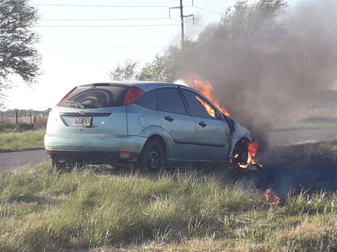 = Foto: CableDigital = Esta mañana un auto se incendió sobre la Ruta Nacional 35, a la altura del Km 540.
