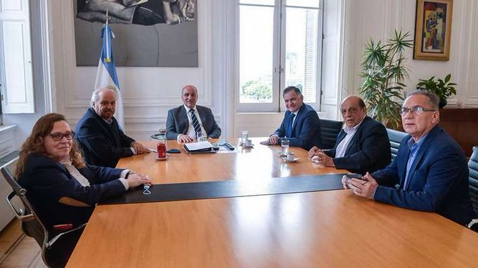 = Foto: WEB = El jefe de Gabinete encabezó un encuentro con los intendentes del conurbano y la cúpula nueva del sindicato. Darán a conocer ...