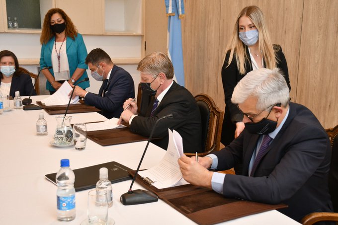 = Foto: APN = El gobernador Sergio Ziliotto firmó un convenio con el ministro de Agricultura, Ganadería y Pesca, Julián Domínguez, con el o...