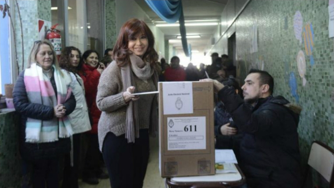 Foto: Cadena3 La precandidata a vicepresidenta del Frente de Todos esperó más de media hora para emitir el sufragio en la escuela 19 de...